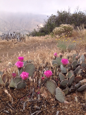 It would have been good to be a bit more efficient with my morning chores, because it soon became apparent that the weather had shifted back to what we all expected of the desert. The trail headed out from Warner Springs across an open field with more Lark Sparrows, then went in to a grove of amazing valley live oaks. Some of these trees were huge, and the microclimate in this grove was substantially cooler than out in the open. We crossed hwy 79 again, then zigzagged up a canyon with more oaks and some very nice sycamores, and it had running water! I filtered 2.5 liters at the last stream crossing before the trail left the canyon. It was 12 miles to the next water. Now the trail began climbing up through chemise and manzanita, traversing up a southwest-facing slope that was exposed and hot. This climb seemed to go on forever, with countless false passes where it looked like we were nearing the top, but in fact had much more to go. It wasn't terribly hot, somewhere in the upper 80s I think, but after the last few cool days none of us were quite ready for this climb in the heat of the day. There was thankfully a slight breeze here and there, but in other places it was still and stuffy. It took me about 4 hours to do this climb, including a break in the shade which really helped this creature of the fog belt.